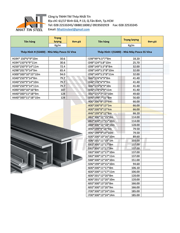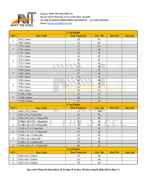 . Có chiều cao bụng từ 50-380mm và chiều cao cánh 25-100mm độ dài thông dụng là 6m hoặc 12m |