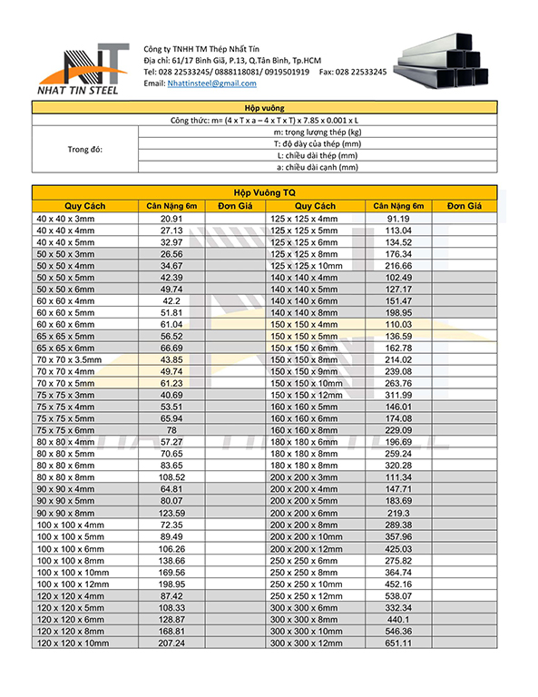 . Thép hộp là loại vật liệu không thể thiếu ở công trình. Có quy cách nhỏ nhất đến 300mm x 300mm và độ dày trung bình từ 0.7mm - 12mm, phù hợp cho mọi công trình ở nước ta.