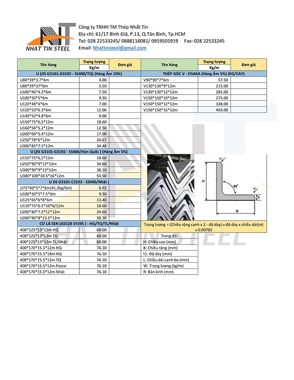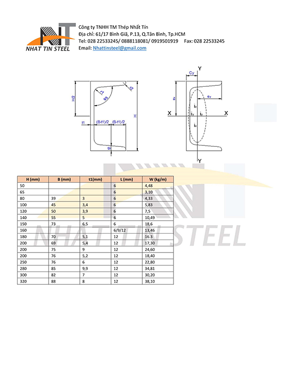 . Chiều cao thân từ 100-800mm chiều rộng cánh từ 50-400mm. Có độ dài thông dụng là 6m hoặc 12m |