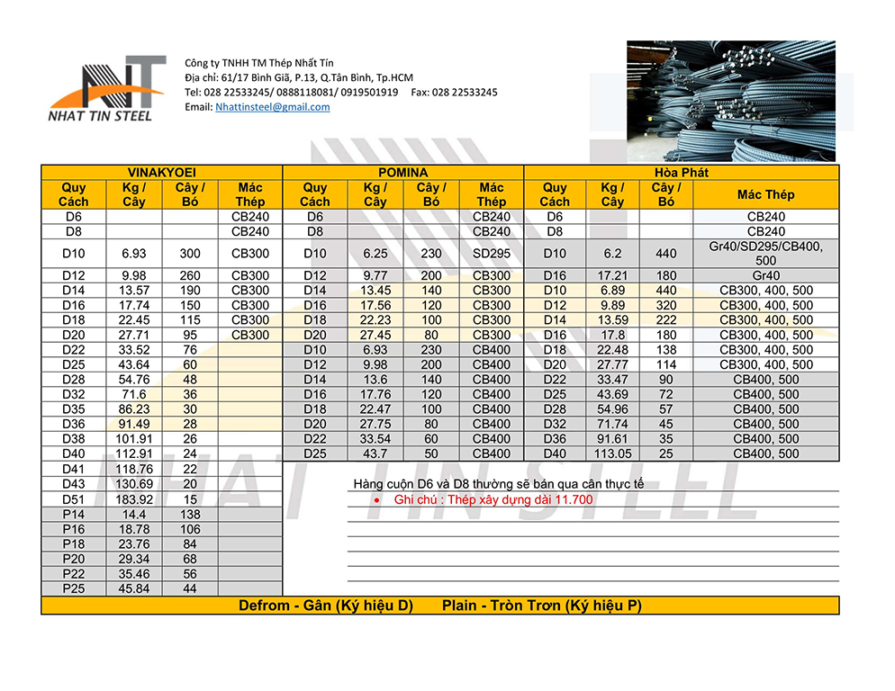. Thép vằn từ D10-D51 với chiều dài thương mại là 11.7m với thân có các đường gân nên còn gọi là thép gân hoặc thép vằn.